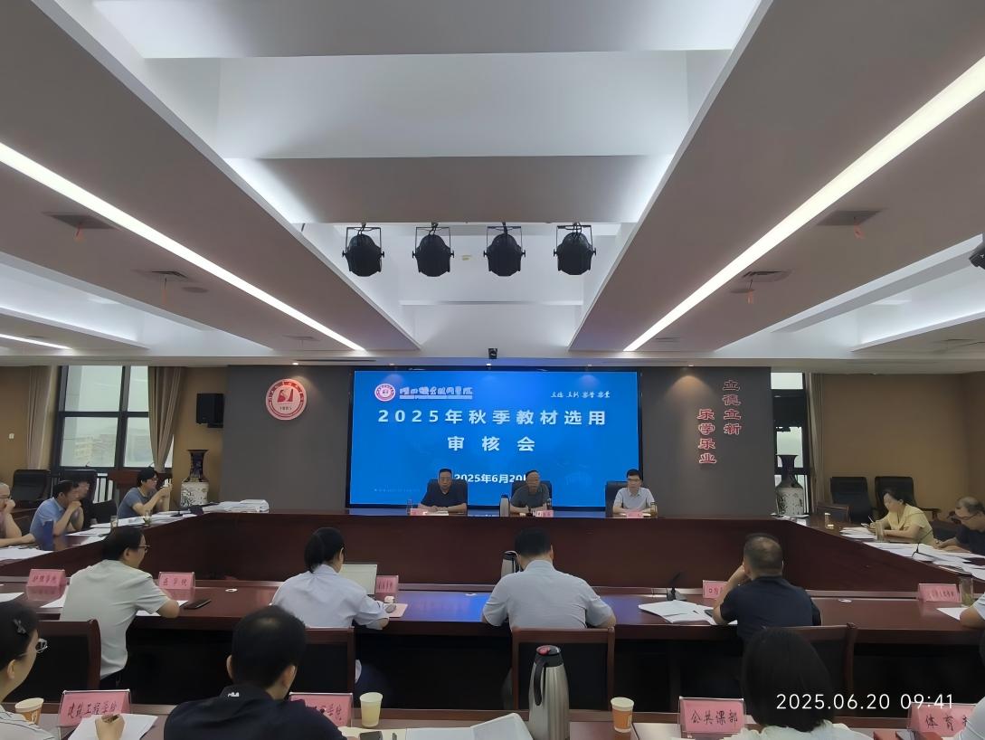 (本网讯 曾俊平) 6月20日上午,2025年秋季教材选用审核会议在南区图新大楼601会议室召开,教材委员会成员、各教学单位分管教学副院长(副主任)、教务处相关人员参加会议。党委委员、副校长胡昌杰出席会议,会议由教务处副处长沈平主持。