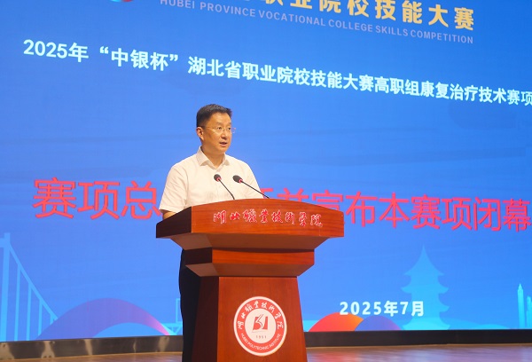 (本网讯 曾欢 陈文培 黄文军 陈灏)7月1日下午,2025年“中银杯”湖北省职业院校技能大赛高职组康复治疗技术赛项颁奖典礼暨闭幕式在PP电子南校区崇德礼堂举行。湖北省职业院校技能大赛执委会办公室卢靖、赛项裁判长李渤、赛项专家组长邹颖、赛项监督长简亚平、赛项仲裁长李艳、PP电子校长郭沙等出席闭幕式并颁奖。副校长胡昌杰主持颁奖典礼暨闭幕式。