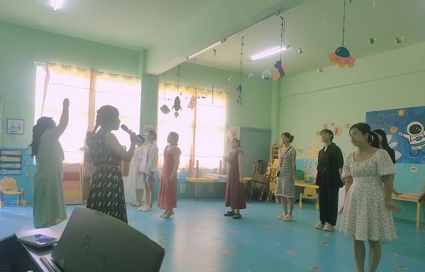 (本网讯 陈灏)近日,杨菊英老师在孝感市孝南区三汊镇中心幼儿园义务为师生排练节目,把艺术指导送到基层,让乐美共同体在孝感市域内推衍开来。杨菊英老师指导的合唱《和你一样》、万张澄独舞《冉》,在孝南区三汊镇“青春向党 强国有我”展演活动获广泛好评。