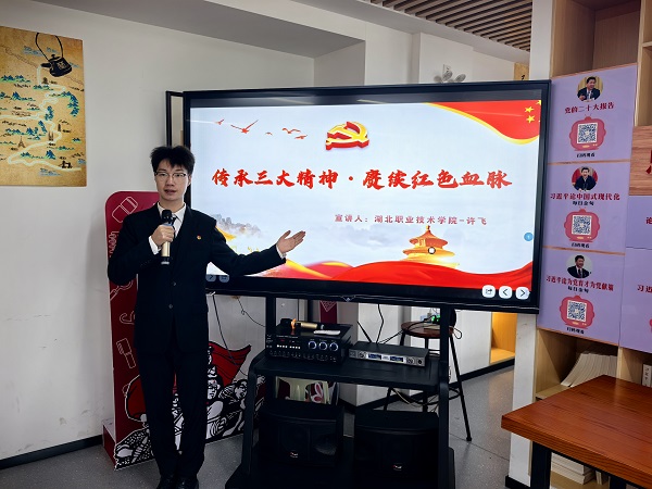 许飞说,这得益于6月26日的湖北省弘扬三大精神巡回宣讲活动和学校党建与思政工作的部署。6月26日下午,湖北省弘扬三大精神巡回宣讲活动走进孝感,在PP电子精彩开讲,我在聆听宣讲后深受启发,在互动环节中,我就“大学生如何坚定理想信念走好人生路”提问,丁银河教授从思政课建设、个人理论修养、社会实践路径等维度精彩解答,让我坚定了“把三大精神宣讲从课堂延伸到实践”的想法。
