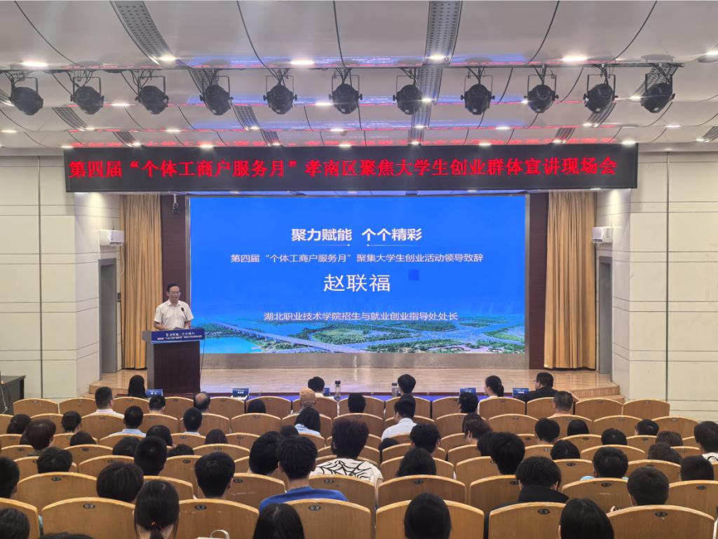 学校招生与就业创业指导处处长赵联福致辞。他表示,将在“深化产教融合,筑牢创业根基;优化服务生态,激活创业动能;强化校地协同,拓展创业空间”等方面给予大学生创业群体精准支持,建立”政策护航”保障机制,将创新创业教育融入人才培养全过程,鼓励广大学子在孝感创业沃土上成长成才。