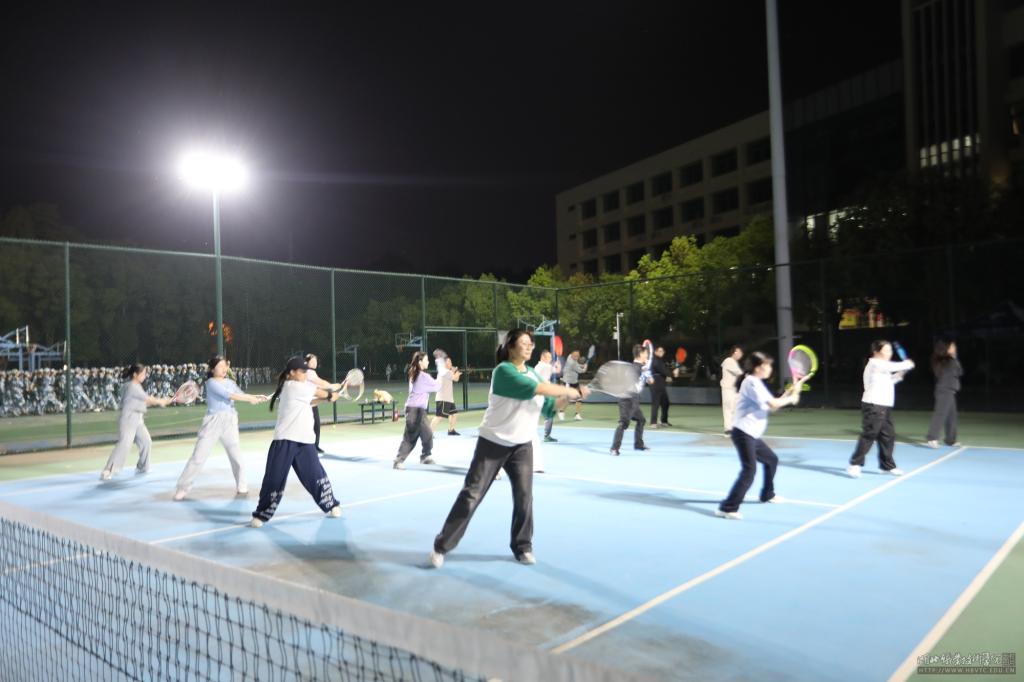 网球场上,教职工们体验着这项优雅运动的独特魅力。从握拍姿势到击球技巧,教练耐心指导每个细节。网球运动不仅能锻炼爆发力和耐力,更能培养专注力与策略思维。