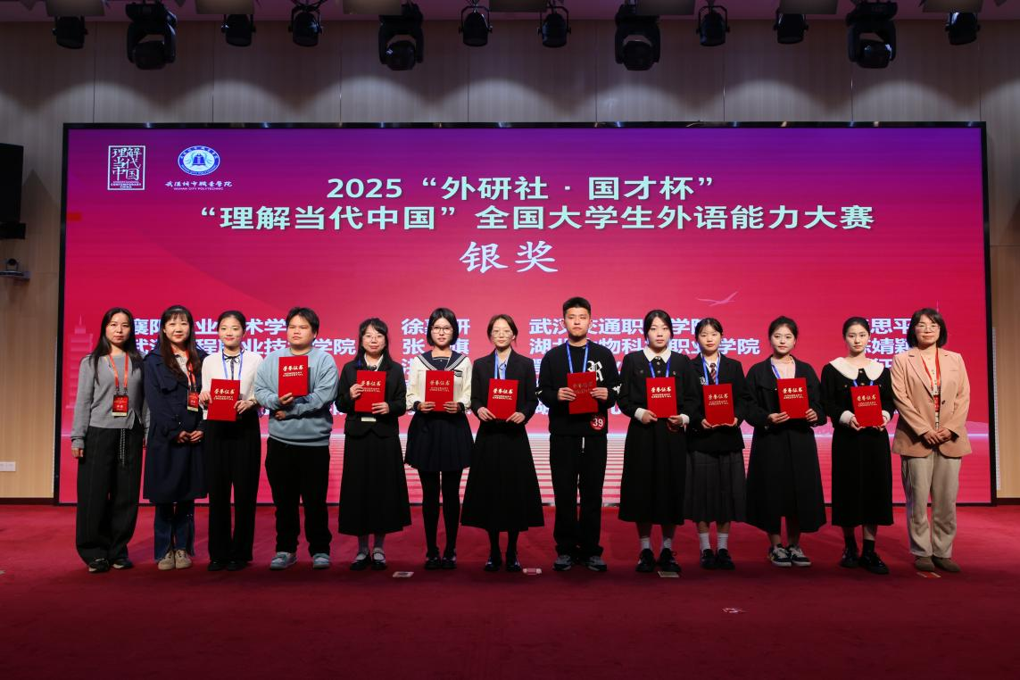 (李珂锐(左五)荣获2025“外研社·国才杯”省赛银奖)