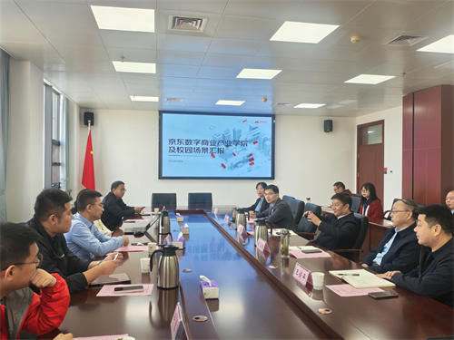 范广辉介绍了京东在零售、科技、物流、健康、工业、产发、保险、国际业务等领域的的技术优势,以及京东“亚洲一号”智慧物流园情况,结合数字商业将成为未来中国经济核心的背景,希望与学校建立全面战略合作,以数智化产业实践助力学校数字化商业人才培养。