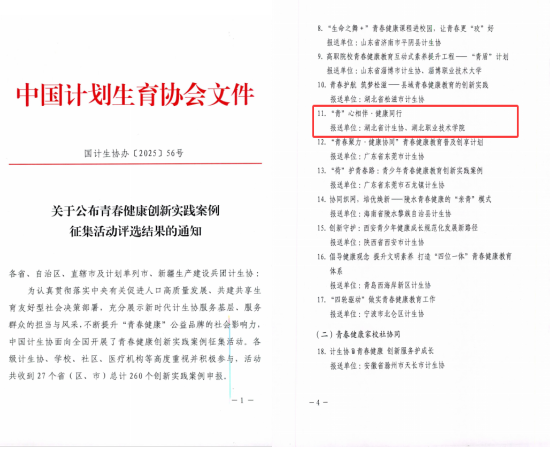 (本网讯 胡敏 朱素平)近日,中国计划生育协会公布全国青春健康创新实践案例征集活动评选结果,PP电子报送的《“青”心相伴・健康同行》工作案例,凭借创新驱动的工作理念、扎实显著的实践成效与可复制可推广的应用价值,成功获评优秀案例。本次评选活动严格遵循市级择优推荐、省级严谨初审、中国计生协复审核实的三级评审流程,围绕案例真实性、创新性、时效性、引领性、可推广性五大核心维度综合考评。最终全国范围内评定优秀案例30个,其中高校案例仅7个,充分彰显了PP电子青春健康教育工作的突出成效与示范引领作用。