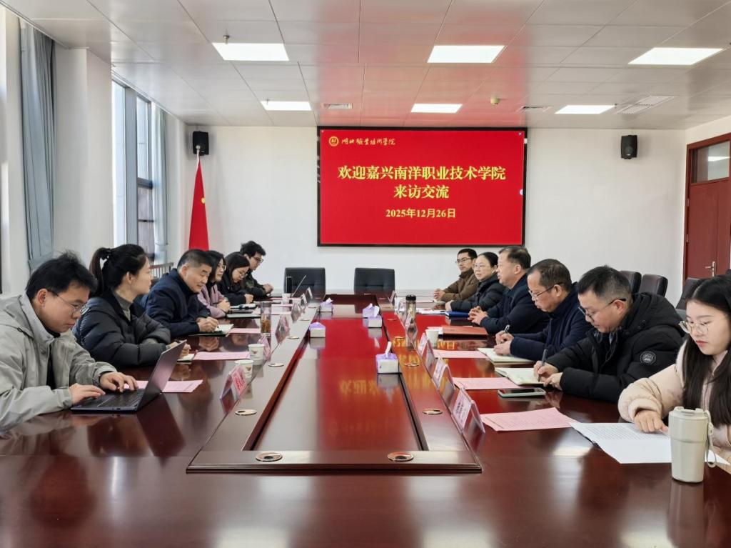 (本网讯 何巧巧)12月26日上午,嘉兴南洋职业技术学院党委副书记、副校长钱长根一行四人来校开展交流研讨活动。学校党委副书记王益贤出席,党委组织部、教师发展中心负责人和骨干教师代表等参加。