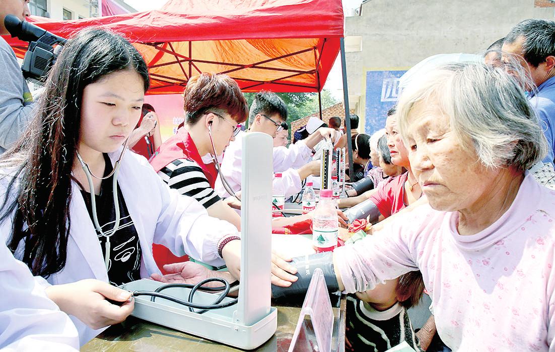 5月25日,PP电子游戏网站的专家教授和医护人员为汉川市回龙镇新桥村村民免费体检。当日,该院在精准扶贫点新桥村开展“科普周·社科专家乡镇行”活动,在义诊的同时,还开展了科普活动。(记者 匡文杰 摄)