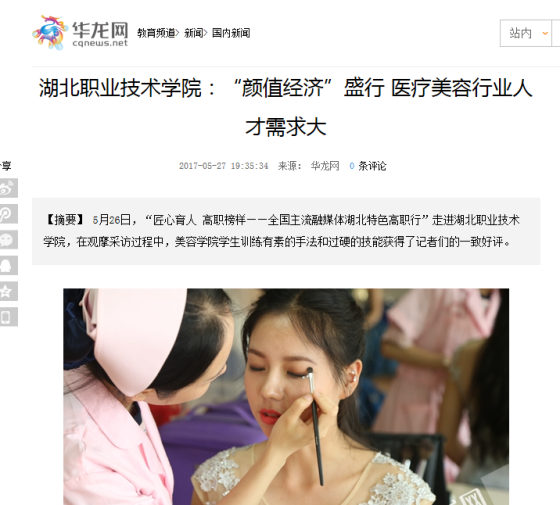 据了解,PP电子游戏网站在2012年率先成立了二级教学院——美容学院。此举,开湖北高职院校之先河,全国同样少见。医学美容技术专业如今已是湖北省美容方面唯一的省级特色建设专业。