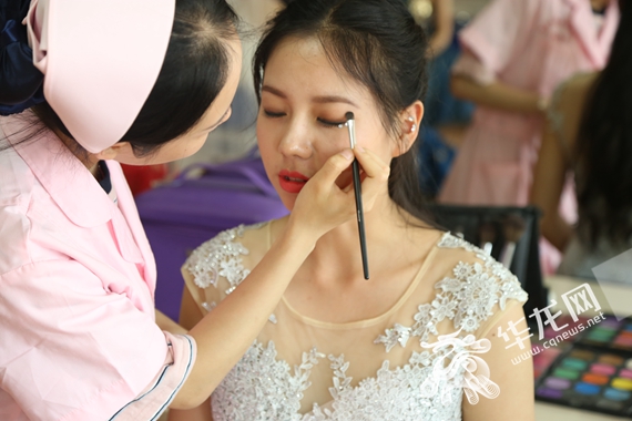 美容学院实训活动中额化妆 杨翼远 摄