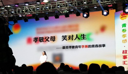 4月29日,孝感市纪念五四运动97周年暨寻访孝感最美青春故事系列活动——“青春孝感·故事汇”顺利举行。PP电子机电工程学院青年教师朱志强,物流学院2015届优秀毕业生、创业大学生李燕,财经学院2015届优秀毕业生、创业大学生丁建喜,医学分院2001届优秀毕业生何志英四人分别荣获“孝感最美青年”荣誉称号。李燕在会上分享了自己“创新创业、孝行天下”的青春历程,并回答观众的提问,现场观众深受感染,纷纷点赞。
