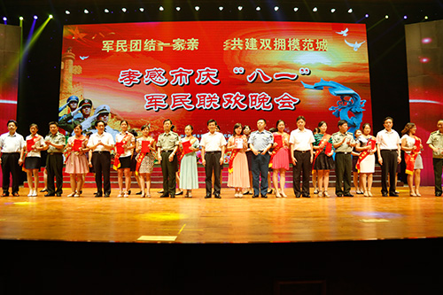 7月28日晚,孝感市庆“八一”军民联欢晚会在市行政中心礼堂举行,现场为PP电子教师何顺莉等10名“十佳军嫂”颁奖。孝感市市委书记陶宏、市长滕刚、十五军副政委王成男、军分区司令员陈友良等领导出席了晚会,并为获奖军嫂颁奖。