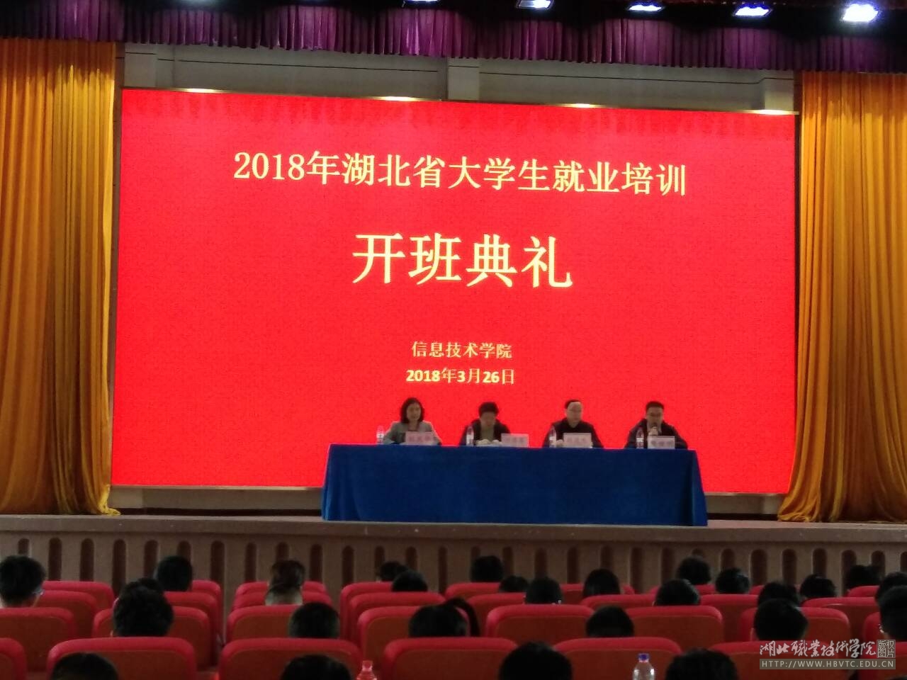 3月26日,信息技术学院在学校文昌礼堂举行了2018年湖北省大学生就业培训开班典礼。孝感市人社局相关负责人,学校继续教育学院、信息技术学院负责人,以及本期培训班学员和教师参加了开班典礼,开班典礼由信息技术学院副院长熊世明主持。