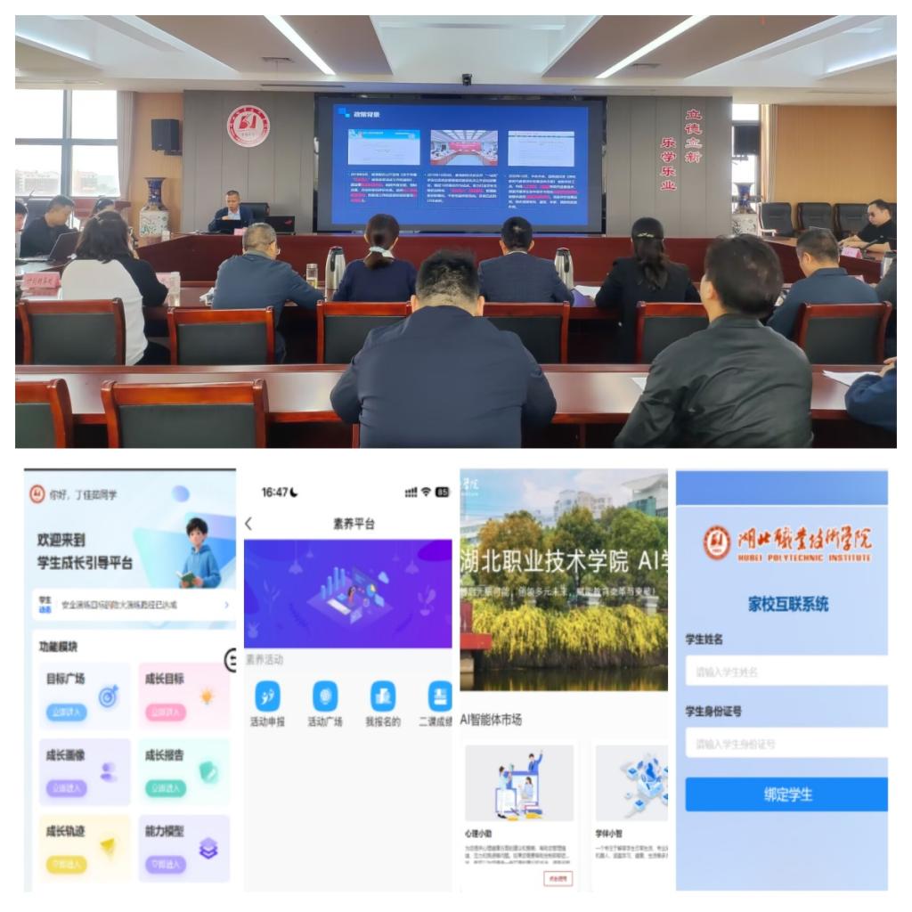 项目承建单位武汉超星数图教育科技有限公司工程主管理、项目经理、实施工程师等对平台建设情况进行了汇报,详细介绍了“学生成长档案数据管理平台、学生素养活动平台、学生成长画像系统、AI学伴系统、家校互动平台”五大模块,并现场进行了平台功能演示。校内部分使用单位代表介绍了相关模块试运行使用情况,并提了意见和建议。