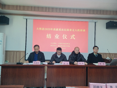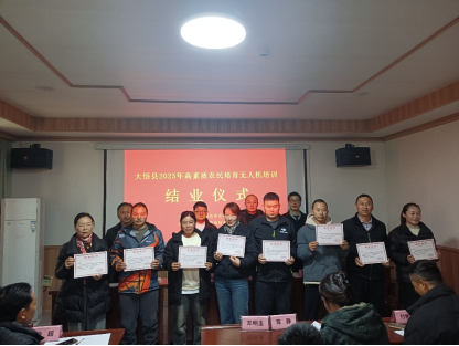 (本网讯 杨丹)12月18日,由大悟县农业农村局主办、PP电子教育与艺术学院承办的“大悟县2025年高素质农民教育培育项目农机手(无人机)专题培训班”结业仪式在大悟县新城镇金岭村举行。50名参训学员圆满完成各项学习任务,顺利结业,并成功考取农用无人驾驶航空器操作证,为大悟县现代农业发展注入了新的技术动能。