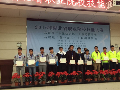 2016年11月18日至11月20日,由湖北省教育厅组织的2016年高职工程造价、工程测量技能大赛在湖北城市建设职业技术学院举行。PP电子建筑技术学院工程造价代表队(参赛学生:汪昕旭、兰涛、关文,指导教师:黄宏勇、陈卓、郭自灿)、工程测量代表队(参赛学生:张恒、肖杜、李宗源、张振,指导教师:付仁俊、张超、张敏华)两个赛项均获团体一等奖,黄宏勇等6位指导老师获得优秀指导教师奖。