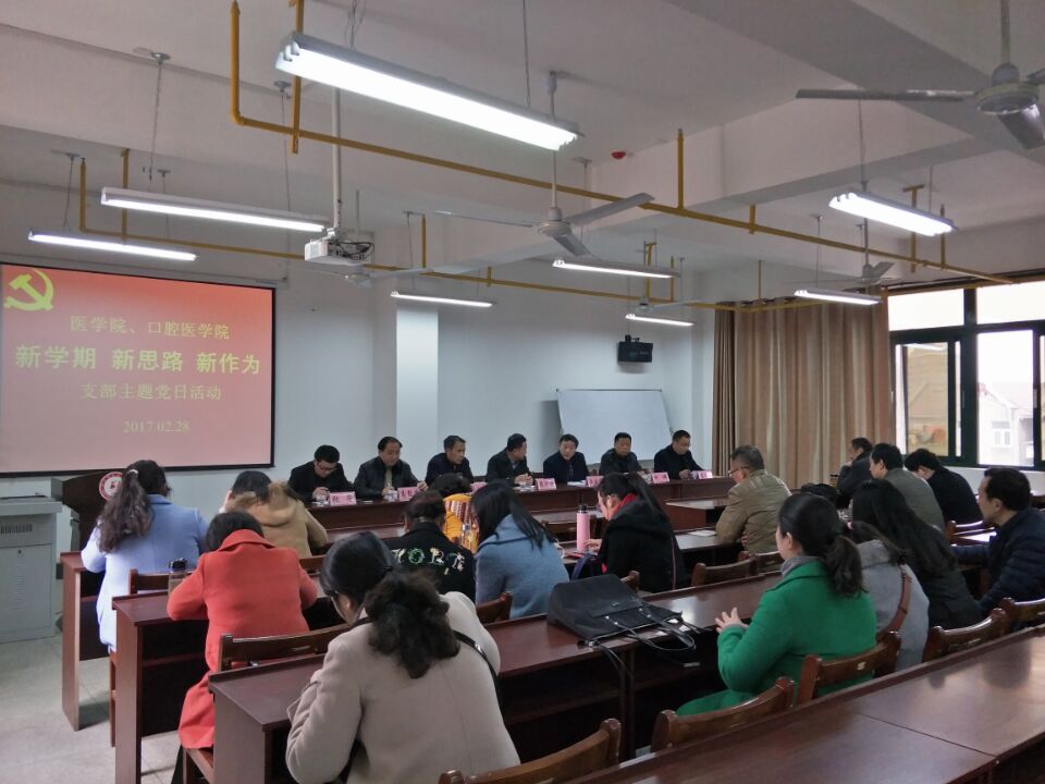2月28日,医学院、口腔医学院党总支组织全体党员在医护实验楼425室开展“新学期、新思路、新作为”主题党日活动,活动由口腔医学院负责人廖建宏主持。