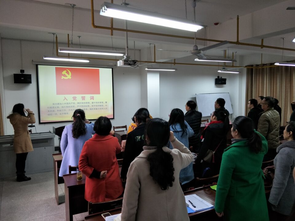 全体党员面向党旗,举起右手,庄严宣誓,重温入党誓词,再悟作为一名共产党员应该具有的责任感和使命感。