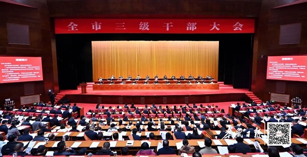 2月6日,全市三级干部大会召开。市委书记胡玖明出席会议并强调,要深入学习贯彻党的二十大、二十届二中三中全会精神和习近平总书记考察湖北重要讲话精神,认真贯彻落实省委、省政府“新春第一会”精神,以“十大行动”为牵引,高扬“进”的主旋律,牢记嘱托、感恩奋进,强化支点意识,推进整体提升,奋力谱写中国式现代化孝感篇章,为湖北加快建成中部地区崛起的重要战略支点作出新的贡献。
