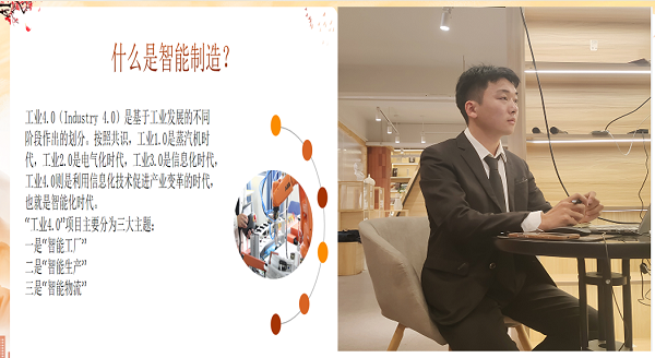 (图片说明:机电工程学院智能制造协会陶中豪同学作《弘扬工匠精神》精彩分享)