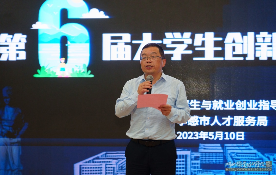 (本网讯 谢毅哲)5月10日晚,学校第六届大学生创新创业大赛决赛在西区文博馆学术报告厅成功举行。学校党委委员、副校长梅重出席比赛,武汉市创业天使导师高泽金教授;孝感市人才服务局局长陈晓军;武汉玄云网络科技有限公司创始人丁子恒;武汉藕遇农业科技有限公司总经理黄祖澳;高级创业指导师、孝感人才超市总经理顾桑桑;高级创业指导师、就业教研室冯志华、胡宇彬副教授担任决赛评委。招生与就业与创业指导处、各学院领导、项目指导老师等300余名师生观看了比赛。